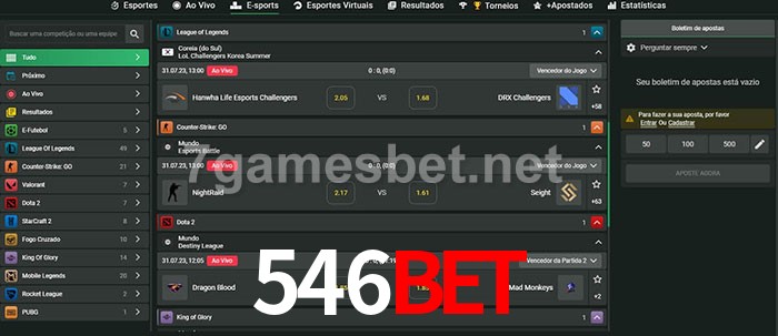 A aposta 546Bet oferece aos jogadores a experiência mais conveniente de apostas em eSports!
